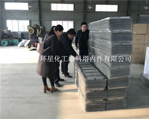 客户考察:内蒙锅炉公司考察分布器丝网除沫器SKB不锈钢孔板波纹板填料驼峰支撑等