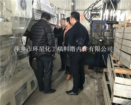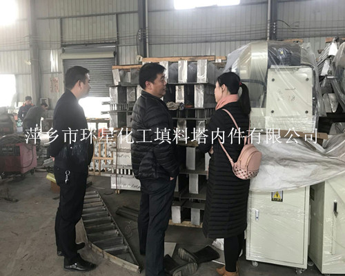 2017年12月6日,我厂(萍乡市环星化工填料塔内件厂)迎来内蒙某大型锅炉公司的陈工和杨总对我厂(萍乡市环星化工填料塔内件厂)的塔内件产品(槽式分布器、槽盘分布器、丝网除沫器、SKB不锈钢孔板波纹板填料、不锈钢驼峰支撑)进行针对性考察。