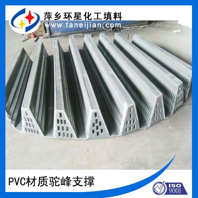 非金属驼峰支撑/驼峰式填料支撑板,非金属驼峰支撑/驼峰式填料支撑板及其制造方法/PVC、CPVC支撑及其制造方法,(萍乡环星化工填料塔内件厂)专业生产非金属驼峰支撑/驼峰式填料支撑板,非金属驼峰支撑/驼峰式填料支撑板用于各种塔器支撑金属散堆填料/塑料散堆填料/陶瓷散堆填料,起塔器支撑填料作用,是最好的散堆填料支承装置。非金属材料包括PP、PVC、CPVC、PVDF、PTFE、ABS板材,其特征在于所述的上述板材设置为驼峰形状,驼峰状支撑本体的两侧设置有一组以上的圆孔,孔与孔的间距为3-50mm,驼峰顶部的内夹角设置为20-100度,非金属驼峰支撑/驼峰式填料支撑板制作方法其特征在于孔与孔之间的间距设置为3-50mm,热处理成型时专用设备内控制温度100-400摄氏度,同时在该过程中通过定型装置制成驼峰状,驼峰顶部的内夹角设置为20-100度,2-200分钟输出。(萍乡环星化工填料塔内件厂)生产的非金属驼峰支撑/驼峰式填料支撑板有着韧性强、耐腐蚀、使用寿命长的优质特点。