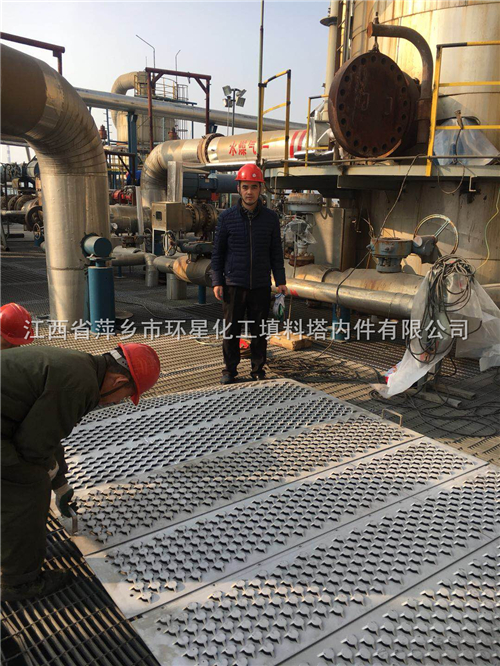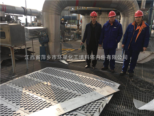 此次合同内容还包含固阀塔盘和泡罩塔盘的安装工作。我公司不仅专业生产各项填料及塔内件产品,还有专业的安装施工队伍。下面是阀塔盘和泡罩塔盘现场安装的图片: