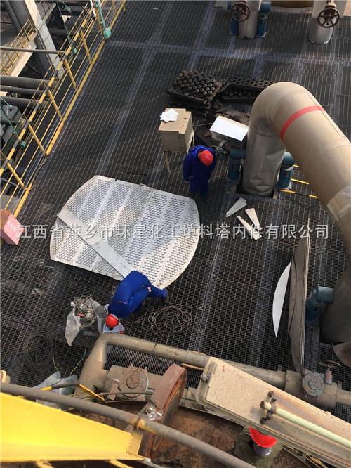 塔盘安装现场:在山东滕州某能源公司甲醇气化装置项目现场安装φ3400固阀塔盘泡罩塔盘