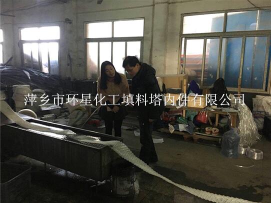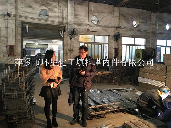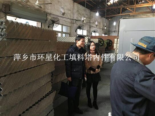 2018年1月10日(江西省萍乡市环星化工填料塔内件厂)迎来徐州某化工厂总工考察125Y/250Y洗苯塔不锈钢波纹填料,该公司于2017年7月份签订125Y/250Y洗苯塔不锈钢波纹填料480立方,现总工对厂家规模、实力进行考察;及生产进度情况全面掌握。