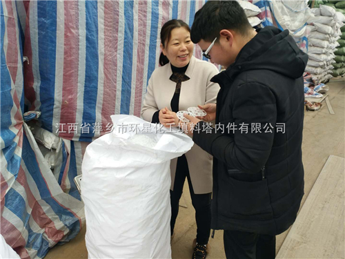 客户验货:海水法脱硫项目95mm雪花环填料吸收塔填料