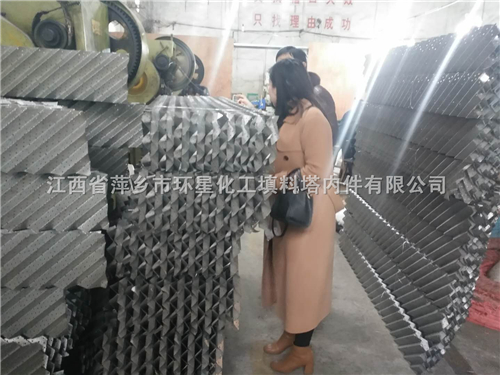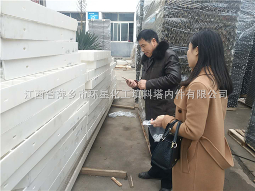 客户考察:安徽铜陵客户考察76mm海尔环PP折流板除雾器塑料压栅压条等填料