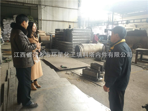 2018年01月23日,安徽铜陵某防腐设备厂来我厂(萍乡市环星化工填料塔内件厂),客户与我厂一直有合作往来,之前有订货:塑料海尔环填料、阶梯环填料等塑料散堆填料。这次客户又要订货一批:76mm海尔环PP折流板除雾器塑料压栅压条等填料。感谢客户一直以来的支持与信任,经过此次考察也更加坚定了以后长久合作的意愿。